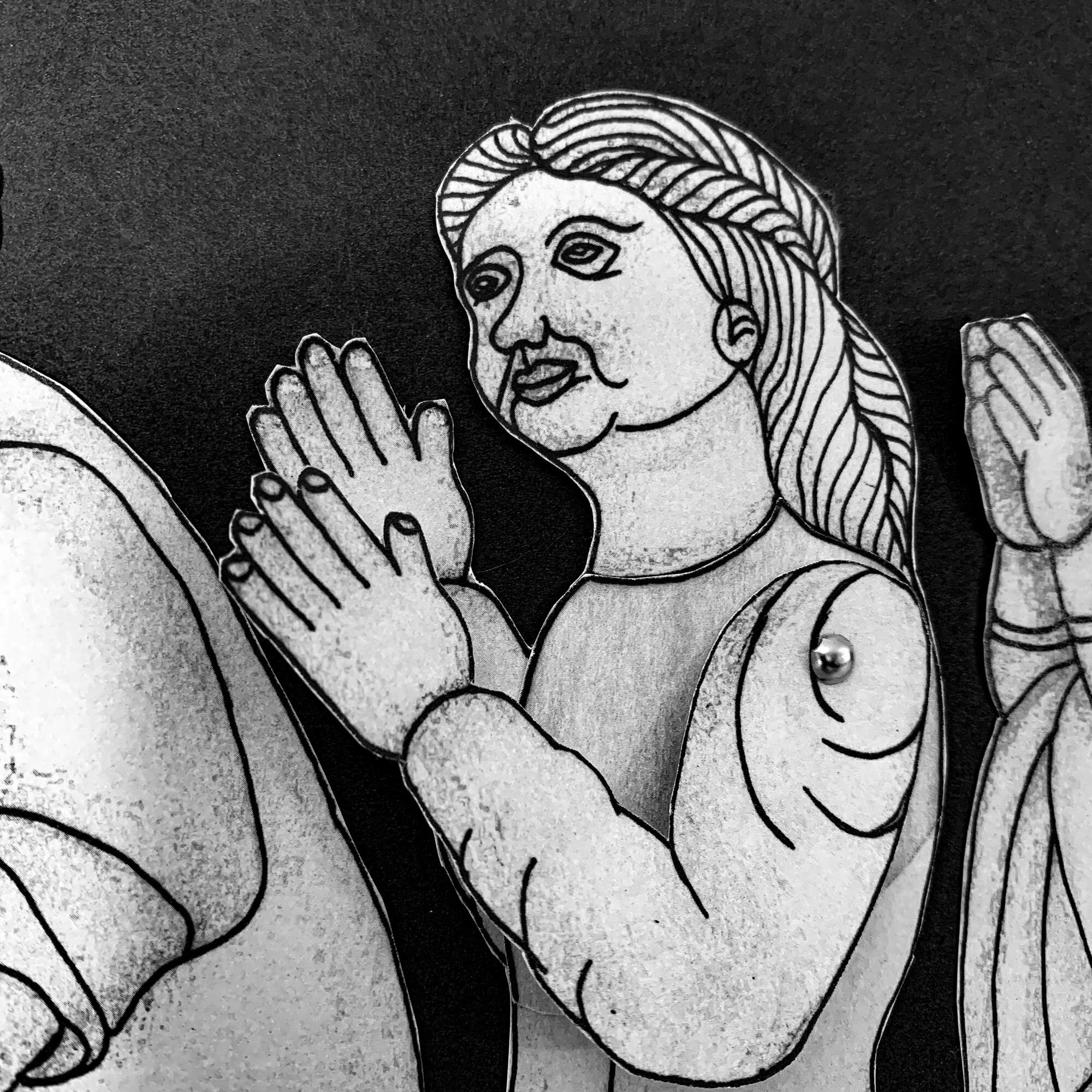 Pen illustrations based on a medieval altarpiece in Marienkirche church in Gelnhausen, Germany.