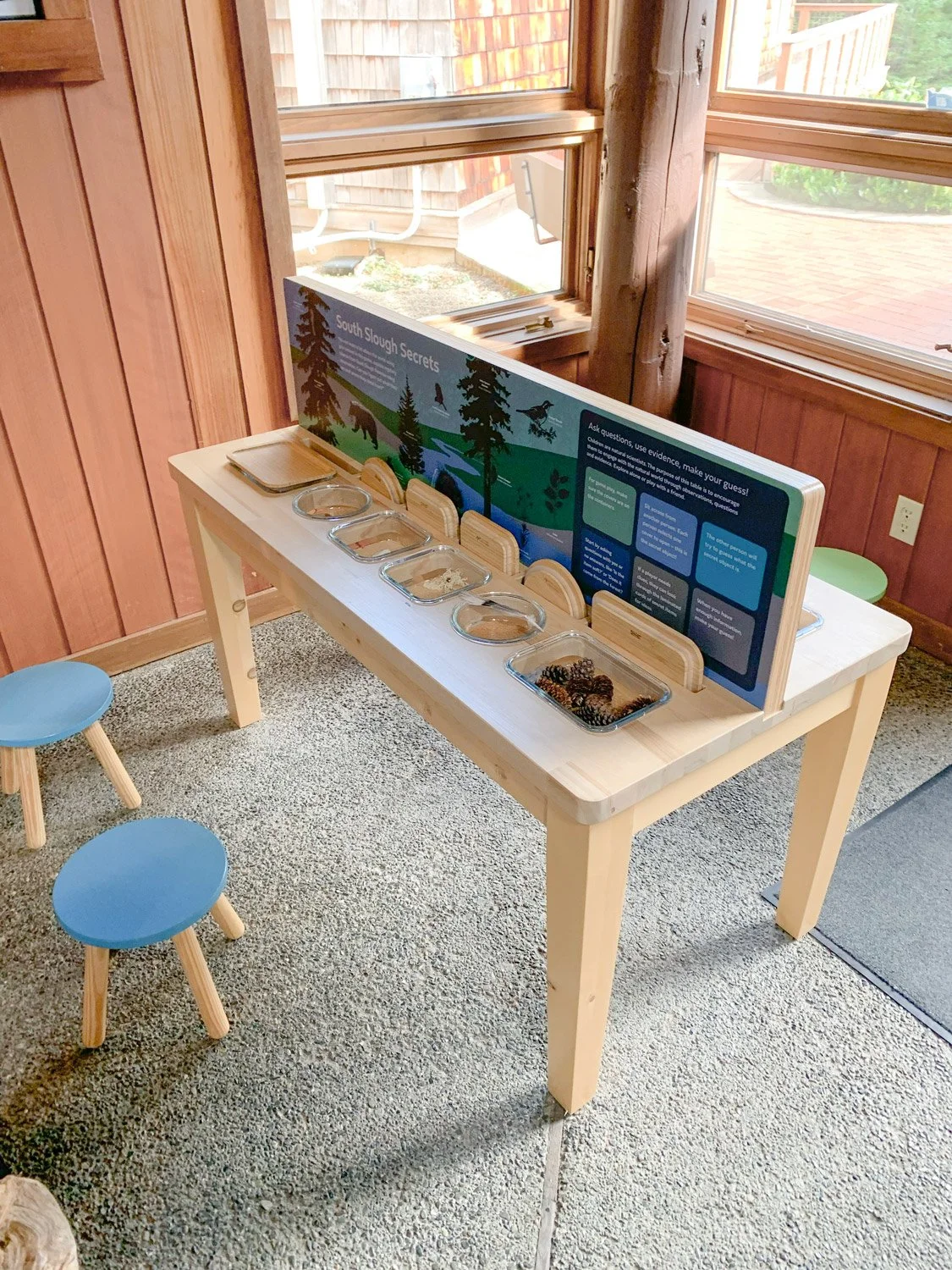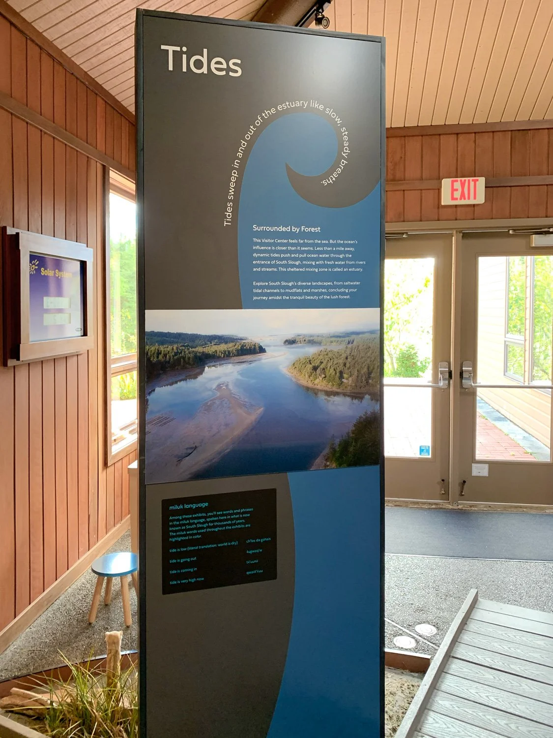 Serving as lead designer and project manager, I developed a complete retrofit of the interpretive exhibits and interior signage for the South Slough National Estuarine Research Reserve Visitor Center, fully reimagining the previous visitor experience.